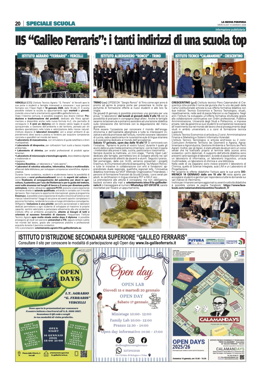 l’istituto Ferraris insidia il primato delle scuole superiori valsesiane